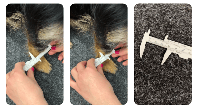 To ensure a perfect fit, we need precise measurements of your pet. Please use a caliper to take correct measurement, following the instructions below.