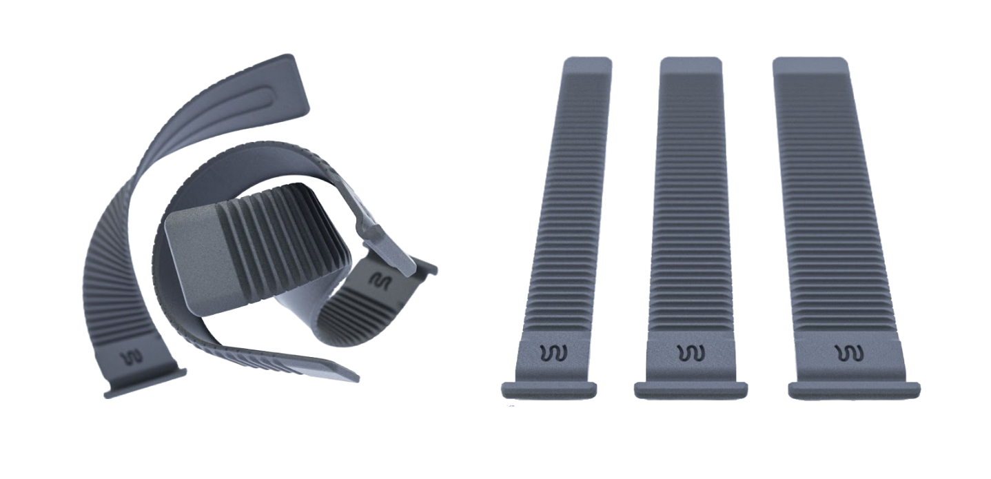 Install the new strap: Make sure to insert the strap with the teeth (grooves) facing outward (i.e., the outer side). Pull the strap all the way through until it clicks securely into place. Put the insert on the strap.