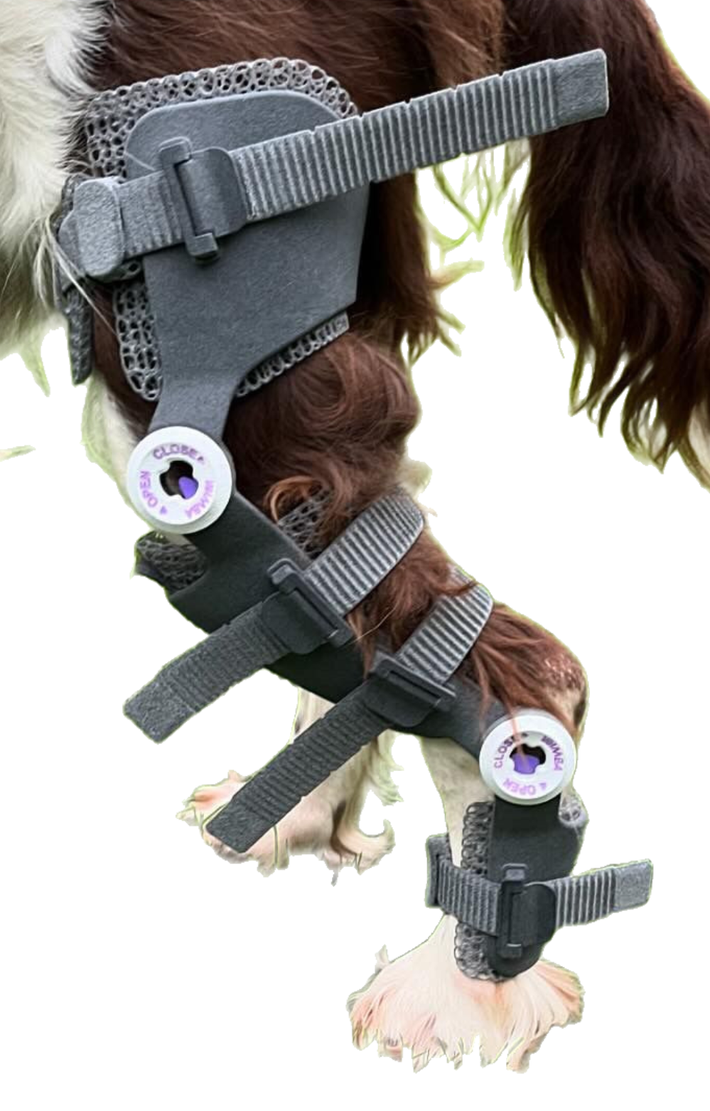 - The brace is in the correct position on the animal’s limb, not too high, not too low, not rotated internally or externally, and hinges are in line with the joint.